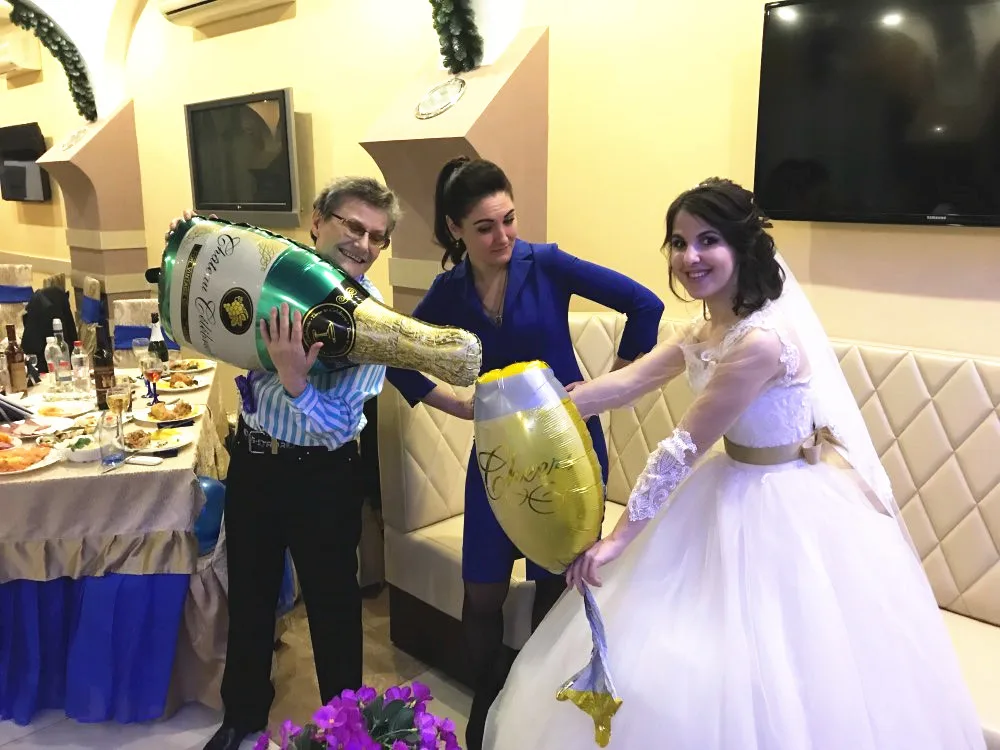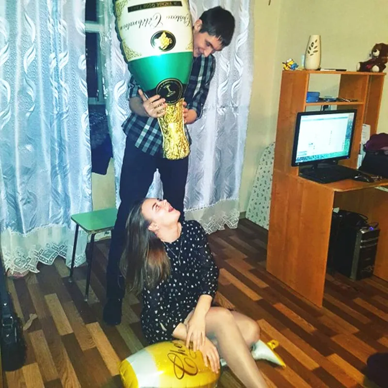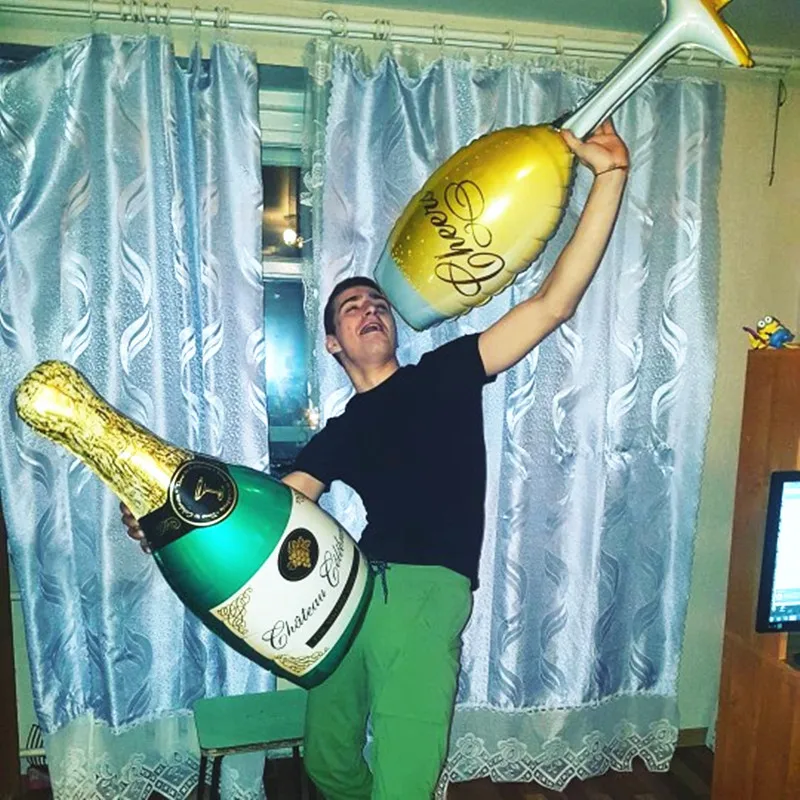 Balloons are beautiful :) large, inflated with an ordinary plastic tube. To inflate champagne you need to blow and several times squeeze in the place where the leg and the upper part of the glass intersects. Thus, the air will go further, or first inflated only the leg. I want to order more :)