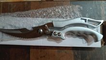 Works well. I used it to cut through a chicken. Didn't break a sweat. I still haven't used it to remove scales off fish