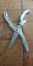 Sharp area, strong area, scrap fish scales area, bottle opening area, multi-functional coexistence, one shear and multi-purpose. Suitable for cutting bone, chicken, meat, and vegetables; open the bottle cap easily; and scrape the fish scales.