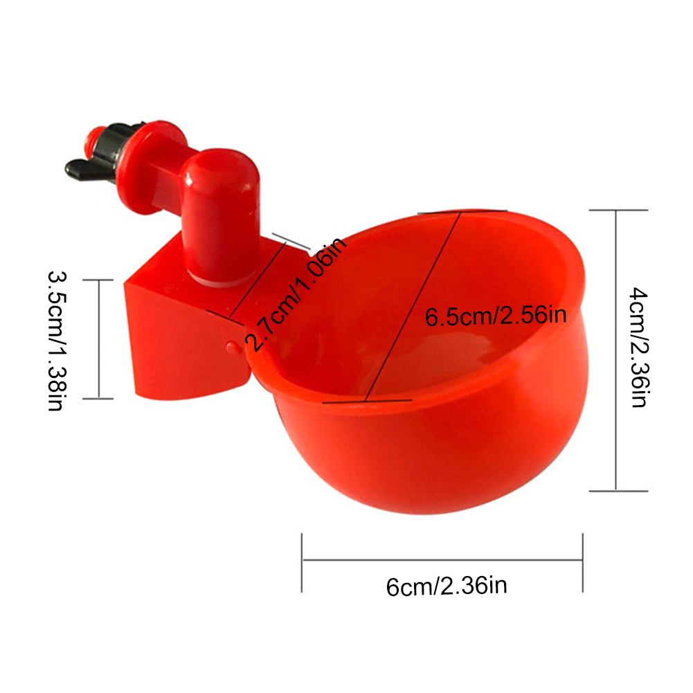Wide Application: The drinking bowl is designed with large cup size with about 2.5 inches (6.5 cm) in cup diameter, which is suitable for chicken, ducks, turkeys, birds and more, super practical.