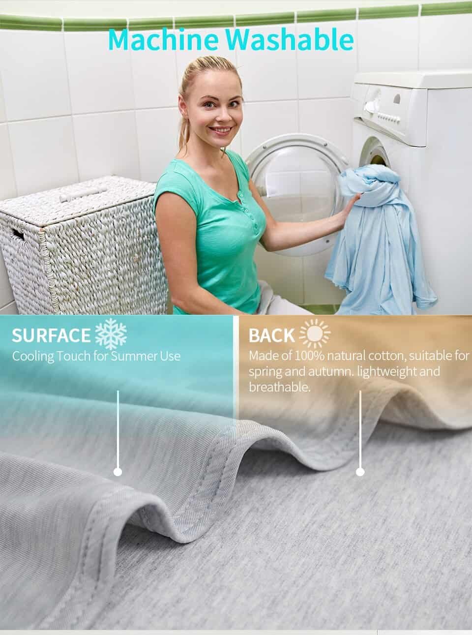 Blanket for summer, consists of two layers. This point is missing in the description. Depending on which side you hide, it will either warm or "cool". Due to the nature of the layer, it really cools. Tactile texture is pleasant for both layers. I like it, I slept the night under it. The store sent it quickly. I recommend the store, you can buy the blanket.