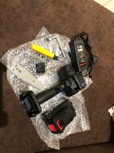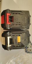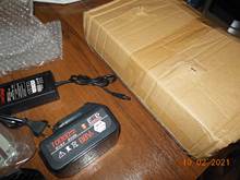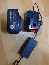 Получил в сильно помятой коробке. К счастью ни чего не пострадало кроме отвертки и небольшой трещины на корпусе. Для тех кто не в теме. Инструмент на 18V. Батареи брал большие (18V. заряженные 21V), показали 19,5V, два ряда по 5 аккумуляторов. Надписи на корпусе 10000mAh а на аккумуляторах не обнаружил, предполагаемая емкость батареи от 2400mAh до 4000mAh, (позже проверю). Зарядное слабое, в нем что-то брякает, вместо заявленных 1.5А дает с трудом 0.5-0.6А. Пилу собрал без проблем, работает, пилит, но плавного пуска нет, хотя в отзывах был упомянут, еще бы звездочку на шину. Нет защиты от случайного включения. Да и еще для информации, такие батареи не могут быть больше 6000mAh. если только считать так 1 аккумулятор 1500mАh*на 5 штук ряд=7500 *на2 ряда =15000, но это не верно. По таким подсчетам надпись на моей батарее означает, что ее реальная емкость 10000 делим на 5 получается 2000mAh. Маловато для такого инструмента.