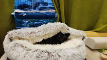 Perfect, soft and cute Too bad that the interior is not as soft, so my cat only puts on top. But I still recommend, Received quickly