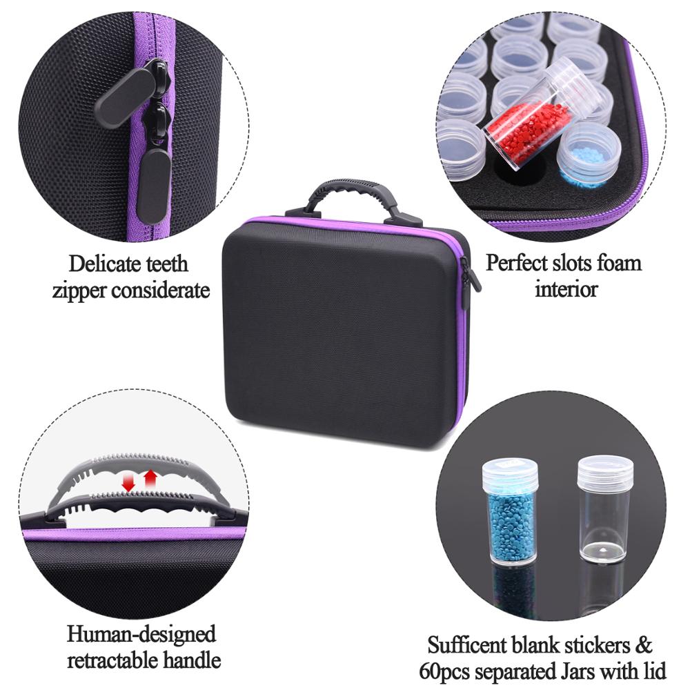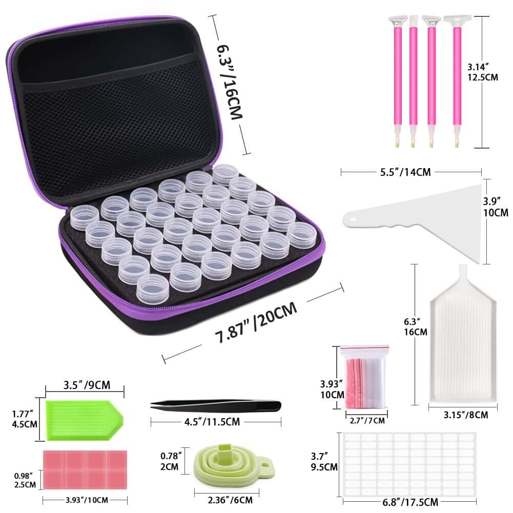 Do you often drop or lose diamonds in your diamond painting set? If that, you will need our Diamond painting storage box right away. The product is made of transparent and environmentally friendly pp plastic, which is sturdy and durable and brings surprises for saving space. The whole storage box is of moderate size, whether it is placed in a dressing table or a bookcase, it will not look out of place and is a good helper for storage. It has many special small boxes for storing diamonds and can be stowed neatly in a pocket. Moreover, it also has a soft plastic funnel and some tools to help you in pouring diamonds into the box. Not only for storing diamond painting seeds, but you can also use it to store some seeds, nail jewelry, pills, and many other small items. Buy right now!