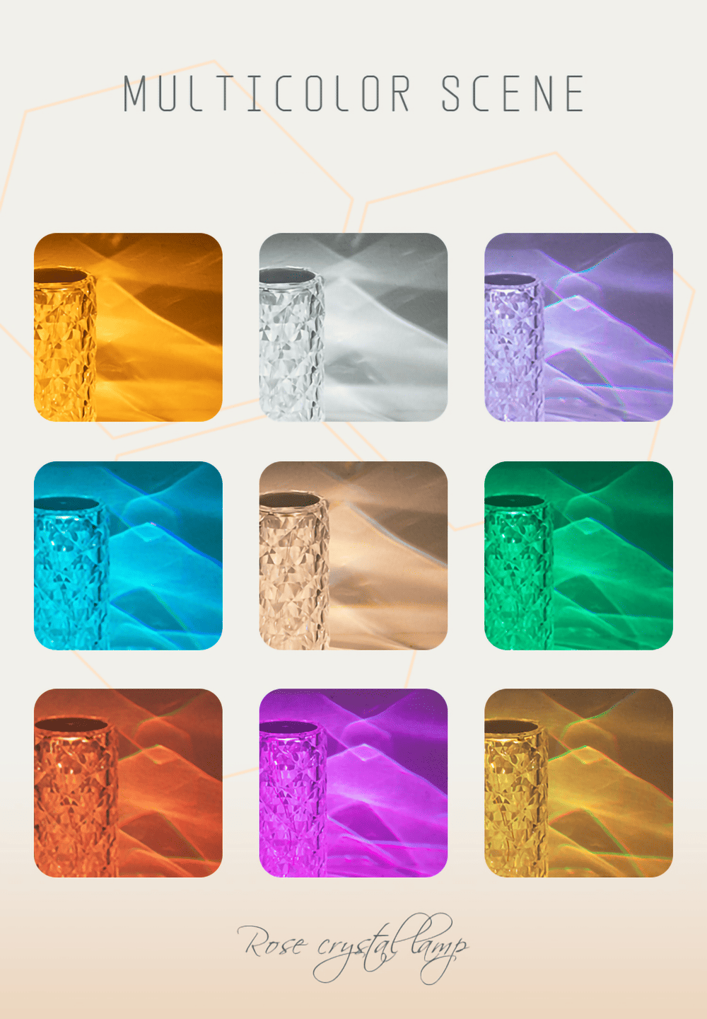 Create a gorgeous, romantic, and warm atmosphere with this stunning Rose diamond table lamp! Using special 3D technology, this elegant table lamp gives off 3D clear lines, smooth lines with a diamond-like effect. The refraction of the light through the crystal lamp is bright and colorful, very stylish. The table lamp also features 3 light color temperatures that are intimate and convenient, delicate, comfortable, natural, and soft. This stylish rose gold small lamp is small and lightweight, placed on your desk or bedside table, it looks modest and delicate under the stylish light. The lamp can be used not only as a crystal table lamp, or bedside table lamp, but also as a children’s lamp, a small desk lamp in the office, and a color-changing lamp for family gatherings. Get it now!