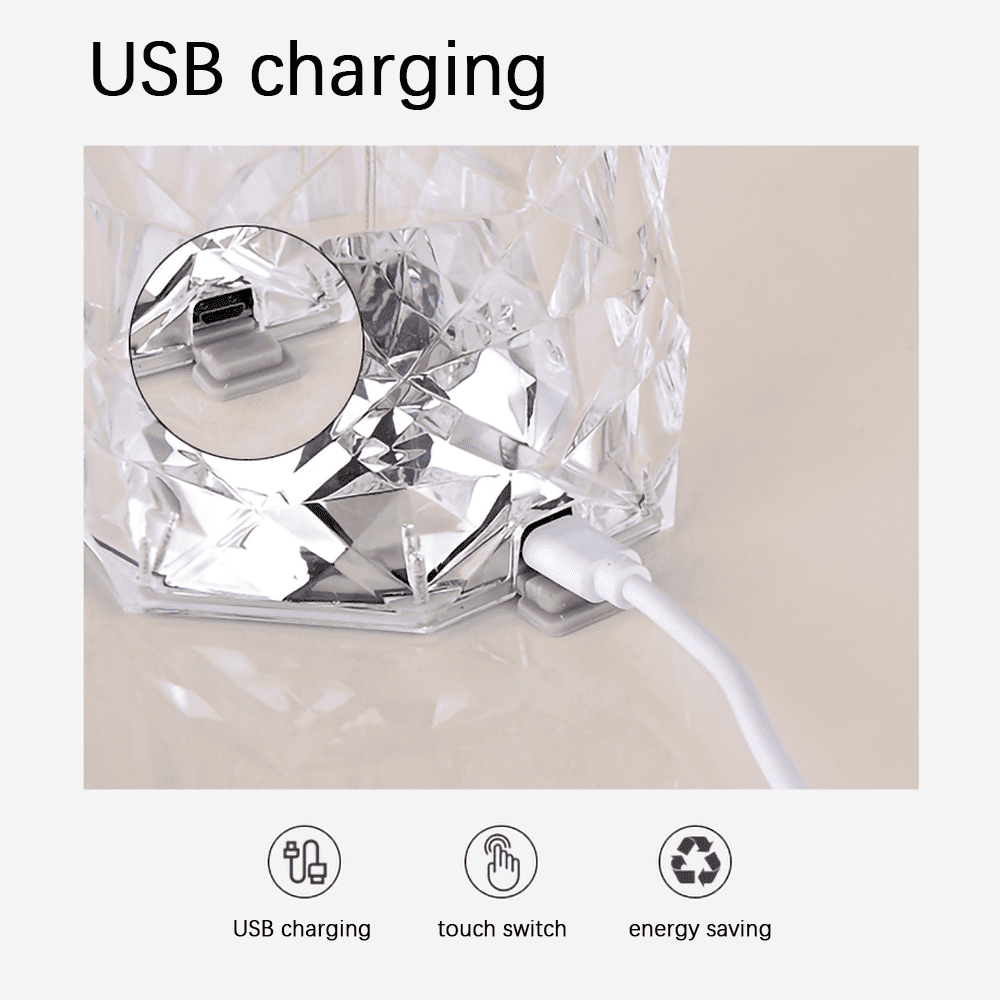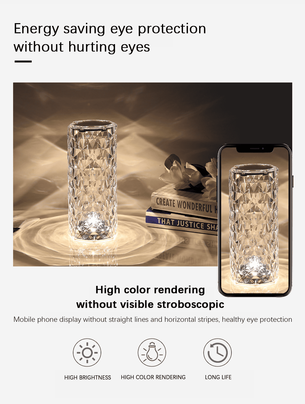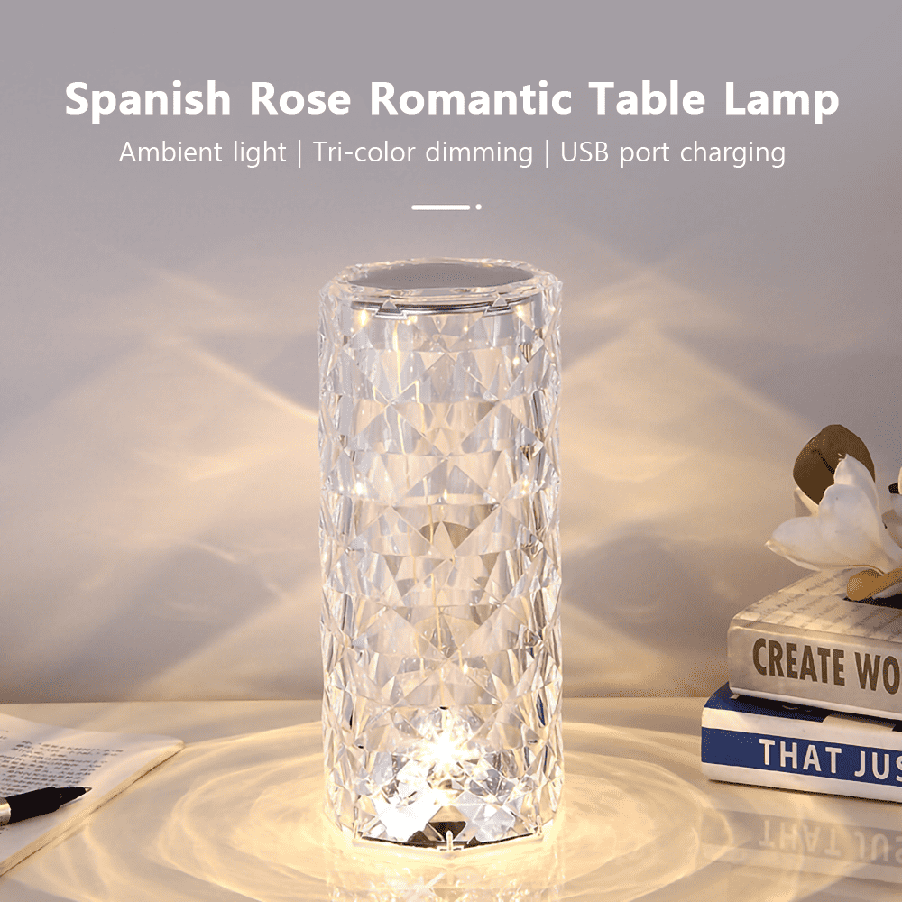 - ROSE CRYSTAL DIAMOND TABLE LAMP: The new concept diamond design is a simple and modern luxury experience. It shines like a diamond without losing its heritage, and its shape is small and exquisite.