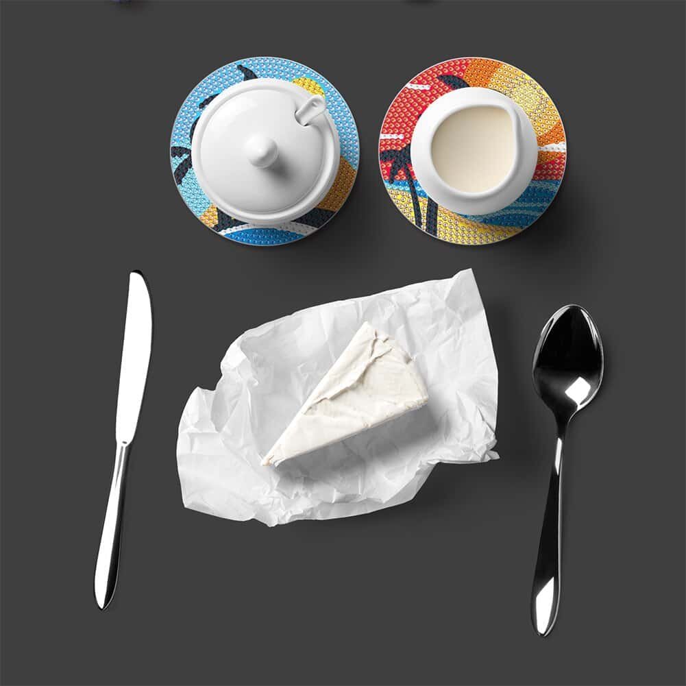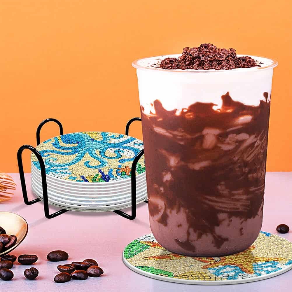 Cork Bottom: Every diamond painting coaster for drink is equipped with nature cork in the bottom, preventing your furniture or tables from scratching and wear. Whats more, the cork bottom will keep the surface of the table from heat, which is safe for you to use.