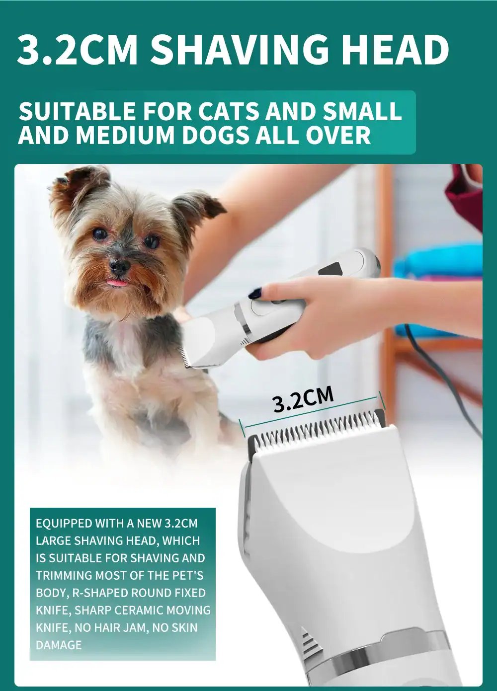 Low Noise Dog clipper<40dB – This dog clipper kit, is truly low noise, noise level <40dB. Suitable for small pets, as well as very sensitive pets. For very sensitive pets, it will be afraid of noisy dog clipper, and this dog grooming kit that will not be awakened your sleeping pet. Focus on the better shaving experience that dog clipper kit brings to pets.