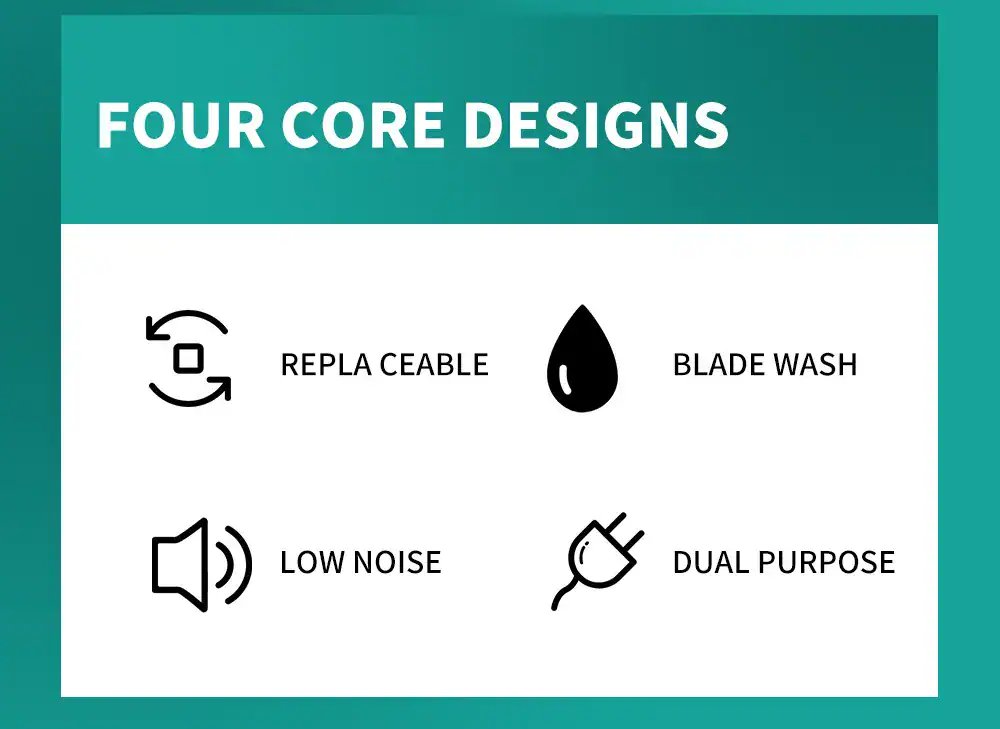 Dog clipper kit with 4 blade heads – This dog grooming kit has 4 blade heads, which is a 4 in 1 dog clipper that can be used in the whole body. This dog clipper for grooming Including Standard head , Narrow head, Nail grinder and Detail head. standard head is suitable for large areas, such as back; Narrow head is suitable for foot; Nail grinder is suitable for nails; Detail head is suitable for small areas, such as faces and ears. Really achieve a multi -purpose machine.