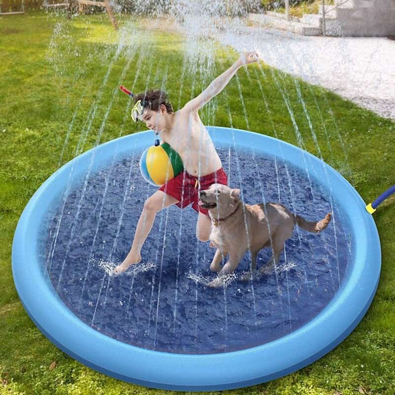 67” Large Size Water Park: The 67inch splash pad for dogs and kids is spacious enough for 2-3 kids with your dogs. Also, Babies and pets can play in this outdoor sprinkler pad at the same time. A perfect outdoor toy for dogs & children parties this summer that can entertain your dogs and kids at once. Suitable for lawns, gardens, swimming pools, parties, or celebrations, birthday gifts, outdoor beach lawn toys, and summer pool parties.