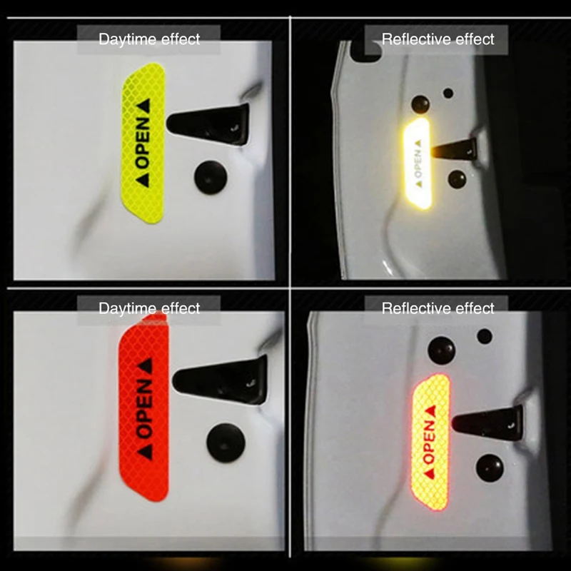 These Door Open Reflective Stickers are an amazing solution to driving in the dark. Reduce the possibility of an accidental collision at night, in rain and fog. Reduces rear-end collisions and side collisions. Suitable for all kinds of cars. Safer for you, pedestrians, cyclists and other drivers. Highly reflective and long-lasting. The perfect accessory for any car.