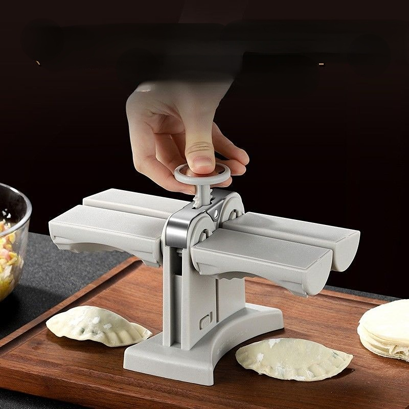 Wrap two at a time for quick dumplings with our Double head automatic dumpling maker! This kitchen tool is simple and easy to operate, with no skills required. Dumplings can be easily made with one press. It is made of high-quality healthy food grade 304 stainless steel, thickened steel sheet, durable, time-saving, and labor-saving. Moreover, contains two mold grooves, imitating hand-made edge pressing, making the edge of the dumpling skin more symmetrical. Make your dumplings beautiful and delicious. The dumpling skin fits tightly, and it won’t open when cooking. The Double head automatic dumpling maker can be used to make dumplings, wontons, ravioli, etc. Order now!
