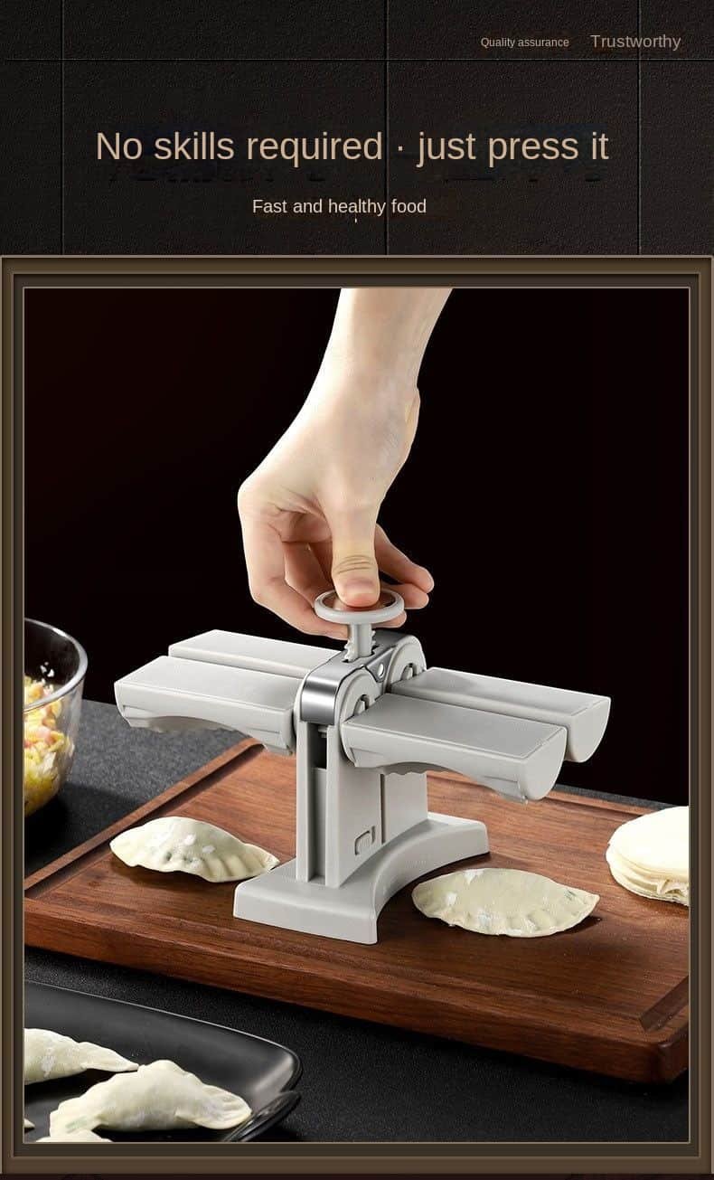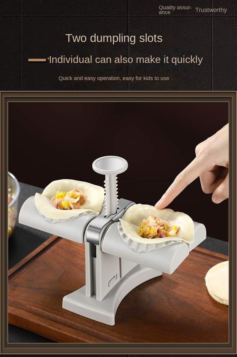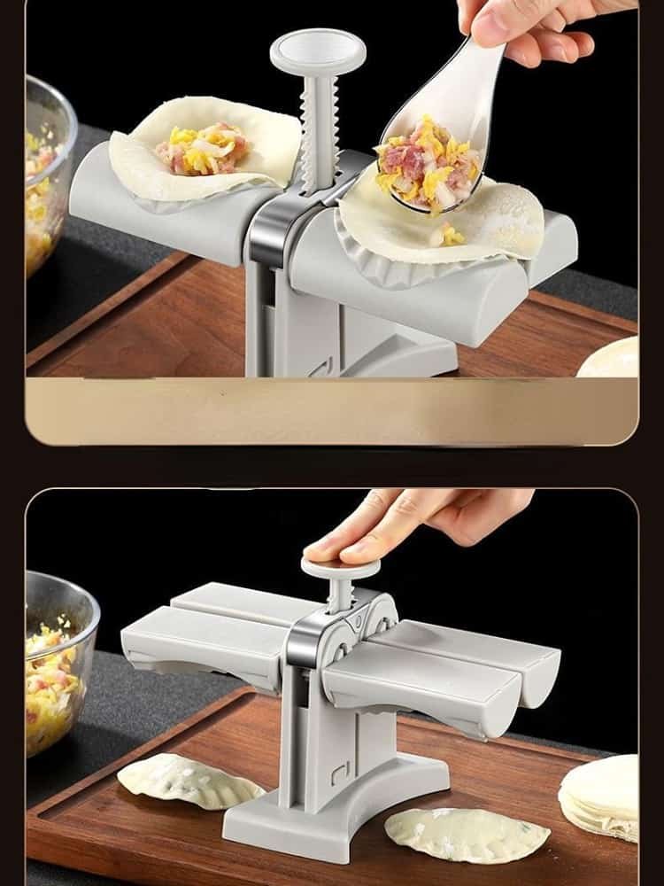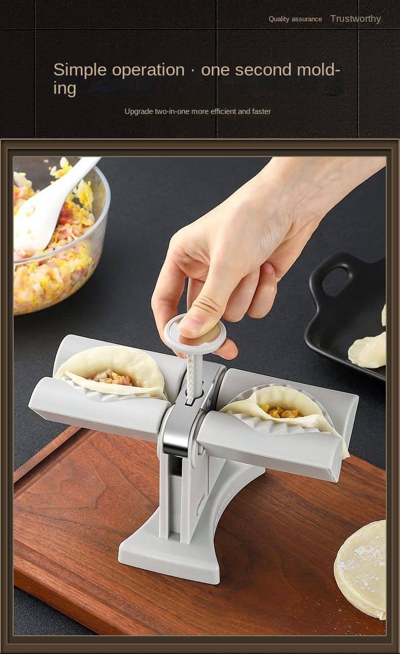 Wrap two at a time for quick dumplings with our Double head automatic dumpling maker! This kitchen tool is simple and easy to operate, with no skills required. Dumplings can be easily made with one press. It is made of high-quality healthy food grade 304 stainless steel, thickened steel sheet, durable, time-saving, and labor-saving. Moreover, contains two mold grooves, imitating hand-made edge pressing, making the edge of the dumpling skin more symmetrical. Make your dumplings beautiful and delicious. The dumpling skin fits tightly, and it won’t open when cooking. The Double head automatic dumpling maker can be used to make dumplings, wontons, ravioli, etc. Order now!