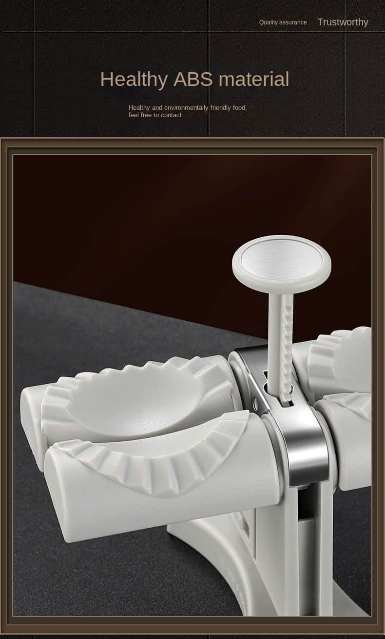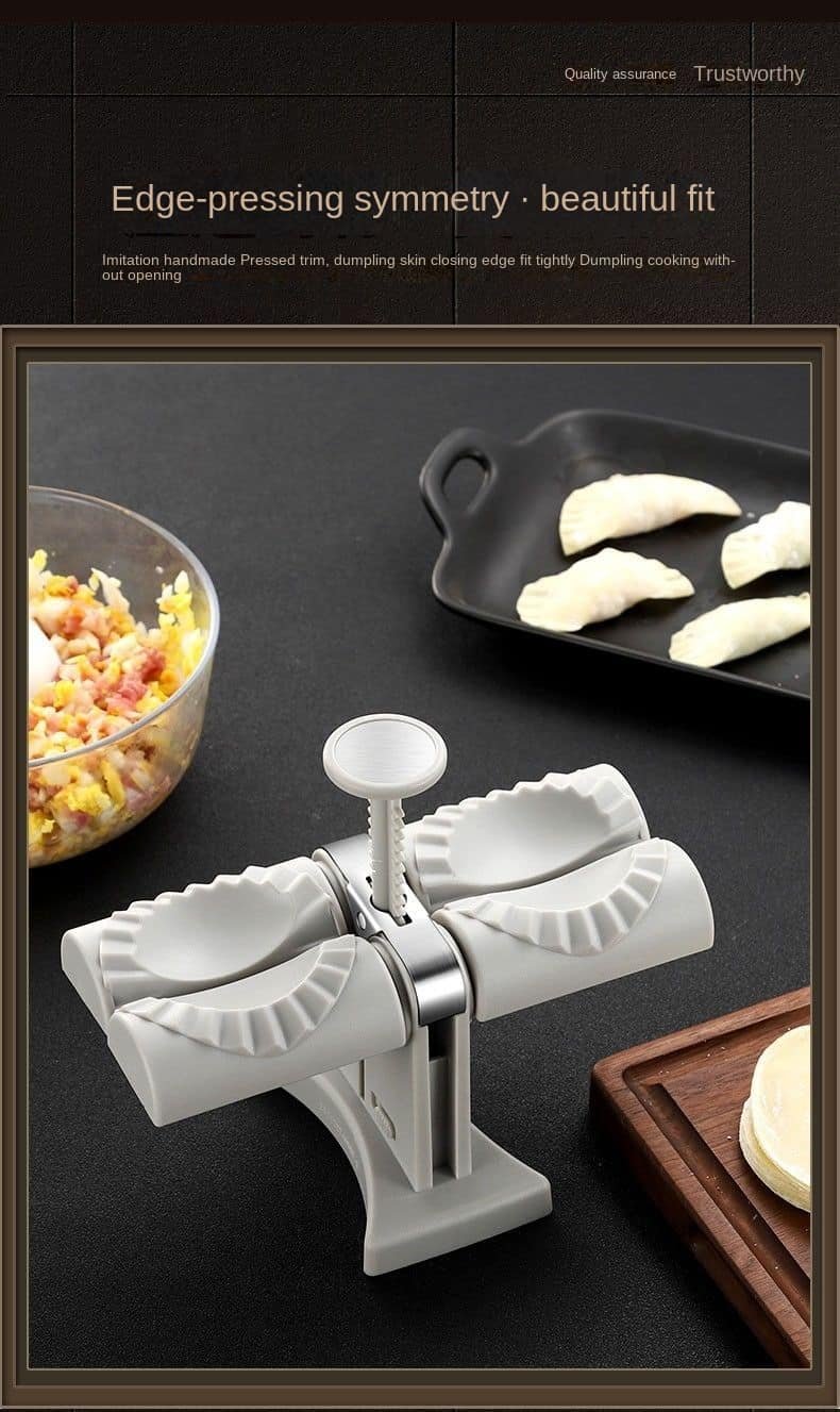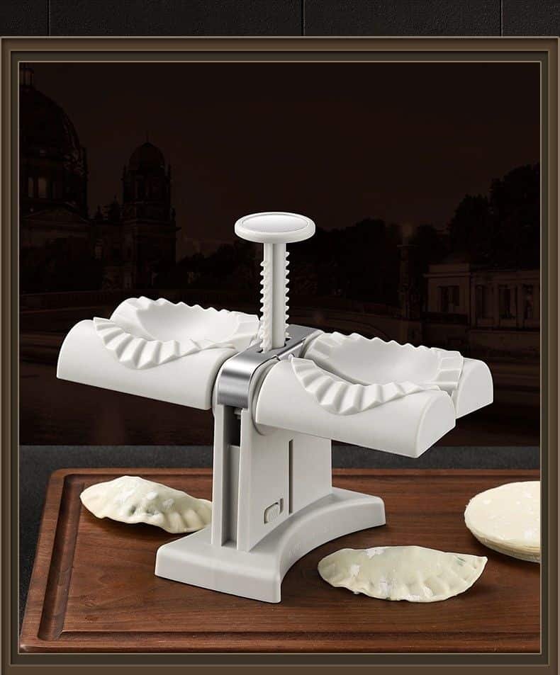 Wrap two at a time for quick dumplings with our Double head automatic dumpling maker! This kitchen tool is simple and easy to operate, with no skills required. Dumplings can be easily made with one press. It is made of high-quality healthy food grade 304 stainless steel, thickened steel sheet, durable, time-saving, and labor-saving. Moreover, contains two mold grooves, imitating hand-made edge pressing, making the edge of the dumpling skin more symmetrical. Make your dumplings beautiful and delicious. The dumpling skin fits tightly, and it won’t open when cooking. The Double head automatic dumpling maker can be used to make dumplings, wontons, ravioli, etc. Order now!