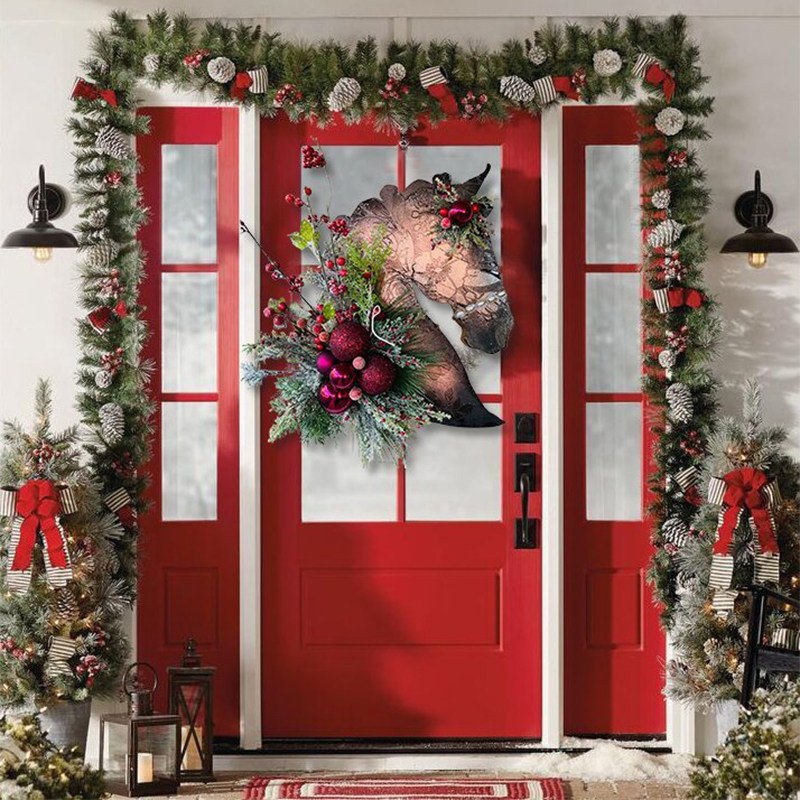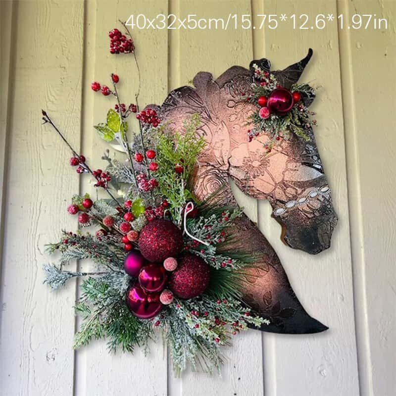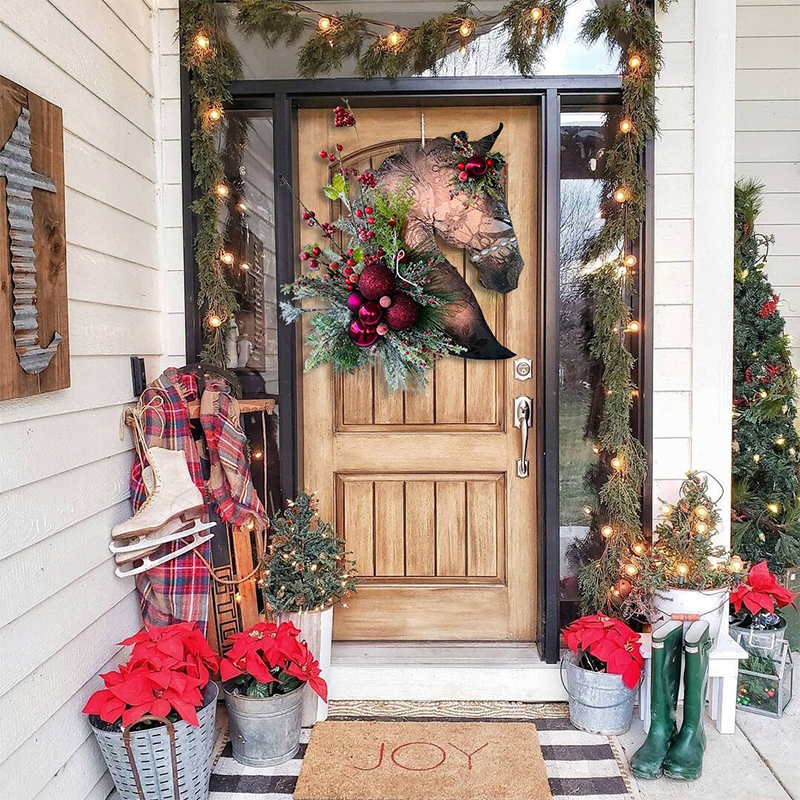 Add Christmas atmosphere to your home with our Dressage wood horse head door hanger! This horse head Christmas wreath is decorated on your front door. It must be beautiful scenery nearby and this beautiful wooden flower door hanger will surely put a smile on your guests’ faces. Each wreath is hand-woven with high-quality rattan and wooden, which is durable, beautiful, and decorative. It is lightweight, pliable, and looks very realistic, excellent decoration for doors and walls. This Christmas garland decor is perfect for your front door, wall, living room, kitchen, store, garden, fireplace, windowsill, along a staircase railing. The wreath ornament is a good gift idea for your family and friends and wishes them Merry Christmas. Get it now!