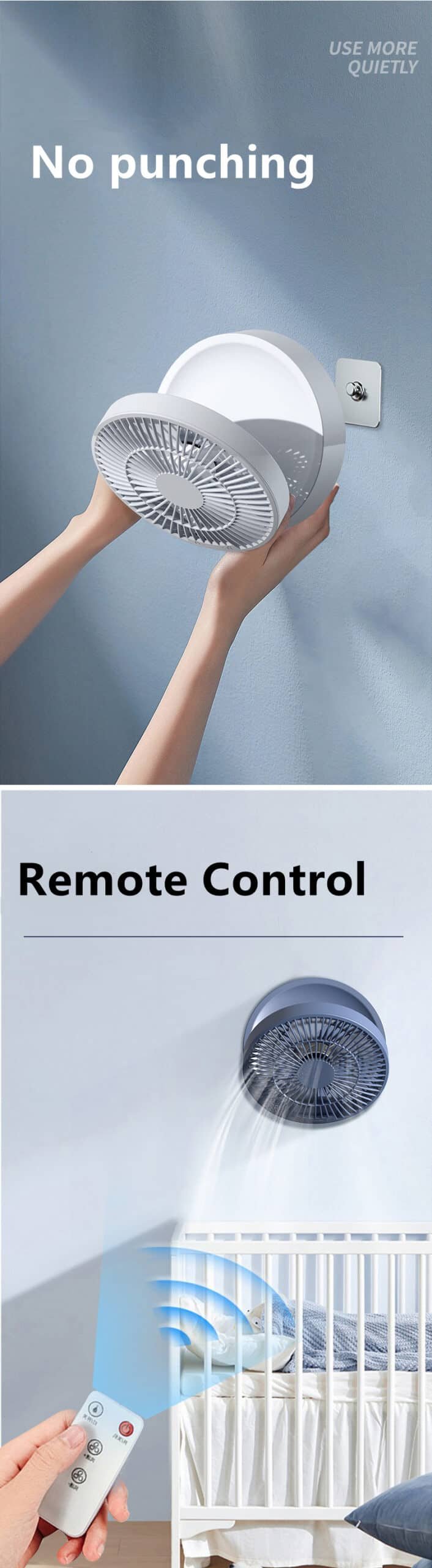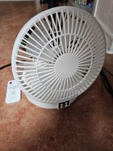 Super small but powerful rechargeable fan with remote control, good for the desk on hot days.