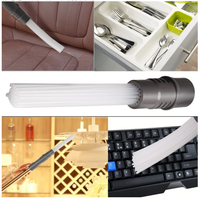 The Dust Brush Vacuum Attachment is made up of a bunch of tiny long and flexible hoses that will allow you to suck up those tiny dirt and dust particles while filtering out anything bigger than the diameter of the hoses. So any tiny screws, scraps, change, or other small things that you don’t actually want to vacuum up will stay in place while cleaning everything up around them. Fits most vacuum cleaners.