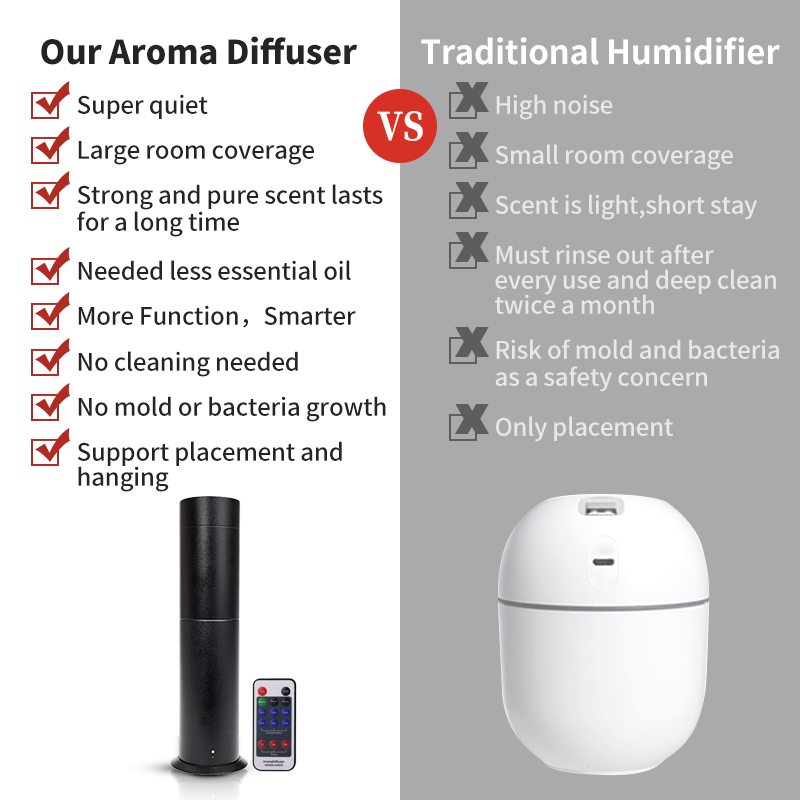 Now you can make your home smell just like your favorite 5-star hotel with our Electric aroma scent diffuser machine! This product is utilizing cold-air diffusion technology, the diffuser turns fragrance oil into a dry nano-mist. With this method, the scent stays suspended in the air longer and has better coverage. Using no heat or water, the Scent Diffuser preserves the therapeutic properties of our fragrance oils without altering their smell. This type of advanced atomization technology is residue-free and safe for pets, children, artwork, and furniture. Fill your space with an even, beautiful, healthy fragrance with the Electric aroma scent diffuser machine! Buy now!