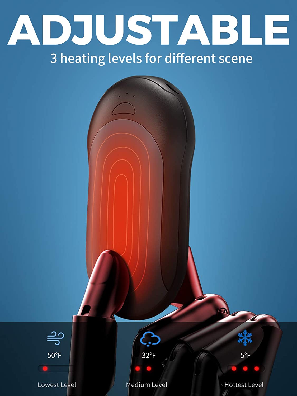 • The Electric Hand Warmer features multiple temperature settings, allowing you to customize the level of warmth to your preference.
