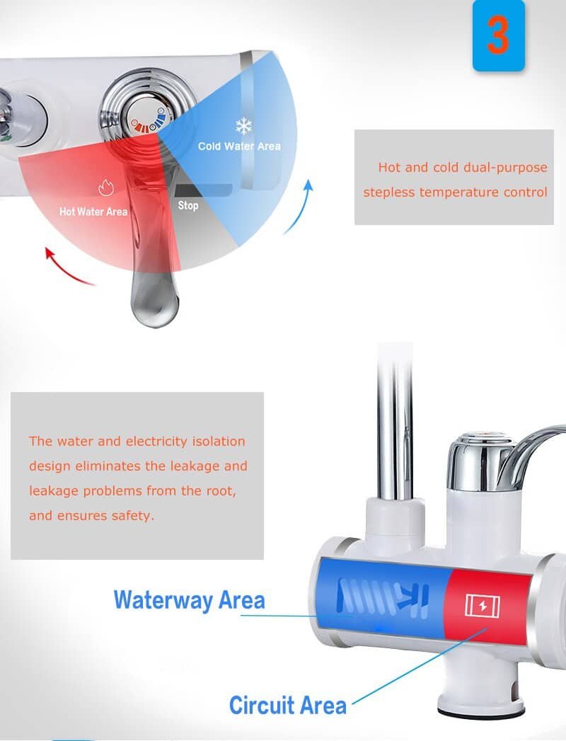 This Instant Hot Electric Heater Faucet is genius! The temperature display is easy to use and is easily readable. It has a high temperature resistant and high shape stability, ensuring a long-lasting and high-quality product. 360° rotating elbow to meet different water needs. Made from ABS engineering plastics.