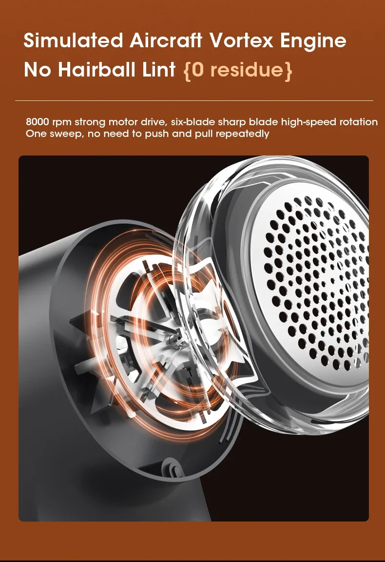 【Efficient and Durable Lint Remover】- Powered by a powerful motor at 8000 rpm, it cuts 132000 times per minute without damaging clothes. The 6-leaf precision steel blade efficiently removes lint and small hair balls, flexibly fits clothing, and works without blind spots.