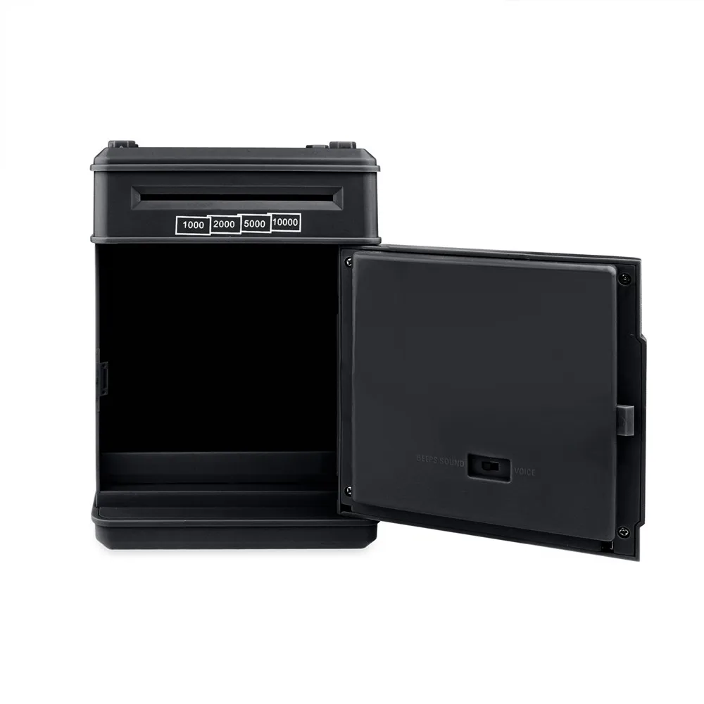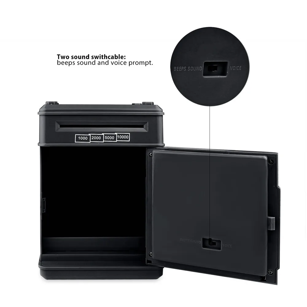 With a password, voice, in addition to saving money, but also to establish savings goals, financial planning. Can be used to store toys, jewellery, bankbooks, etc. The slot in the coin slot can hold COINS or paper money.