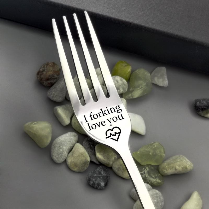 2. Engraved Message: The fork features a playful and endearing engraving that reads “I Forking Love You.” This clever play on words adds a touch of humor and lightness to your affectionate message, making it a memorable and charming gift.