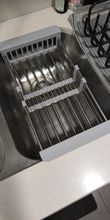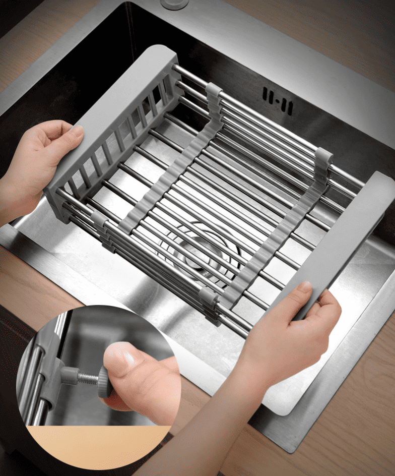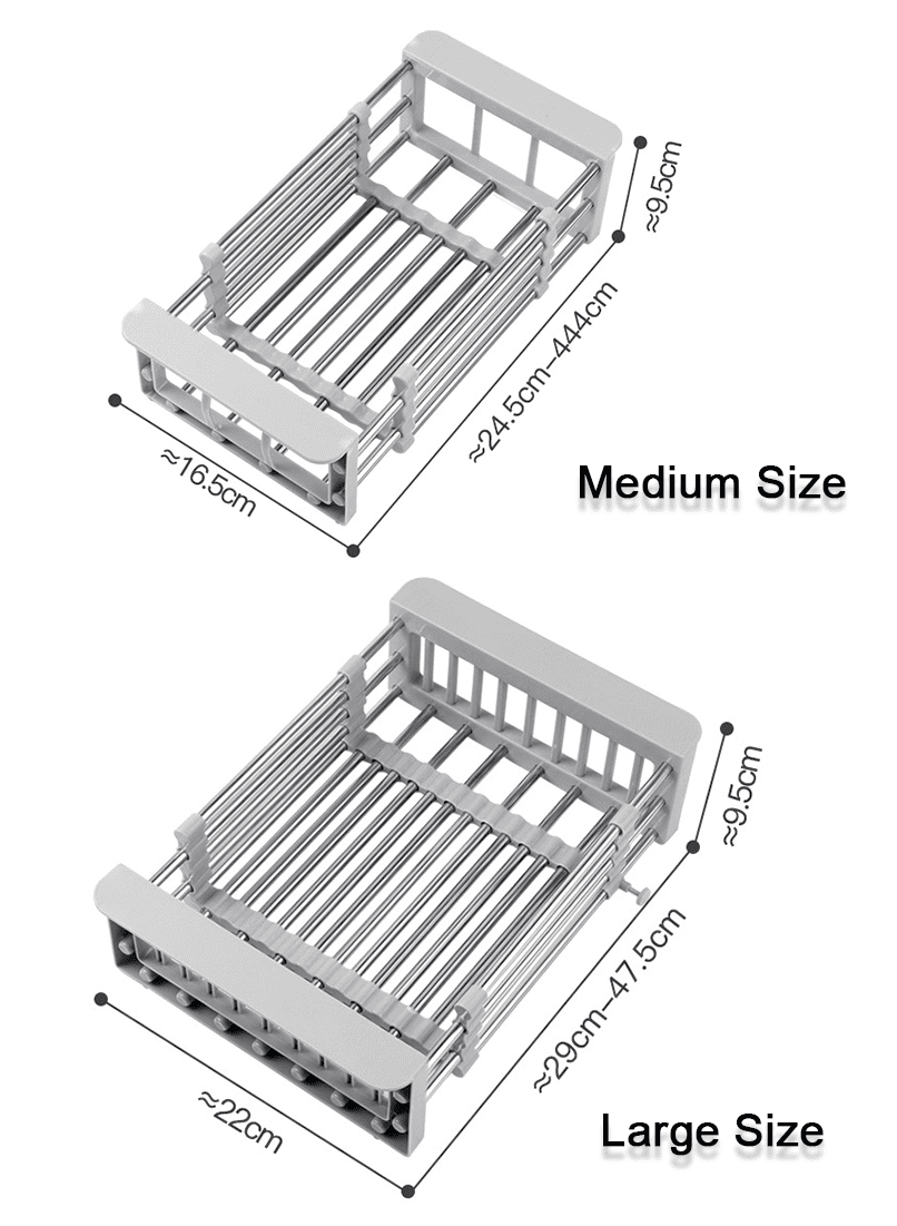 Method of use: The small design often plays the most important role, on the side of the drain grid has a small rotating screw design. Squeeze the screw after adjusting the width, make sure that the scrubber dishes drying shelf is not stirred, it can be firmly placed in the sink. (Screws should be completely tightened for a maximum effect).