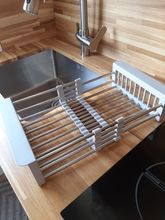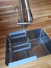 I used the Drainer for dishes glasses or washing fruit and vegetables. It perfectly adheres to the sink and supports quite a bit of weight. Something expensive but worth it