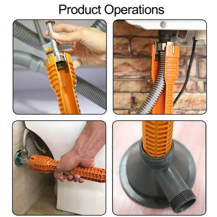 Are you facing these problems: narrow operating space, cannot tighten the water pipe, and leak or ordinary tools are not powerful? Introducing to you our Anti-slip faucet wrench. It allows for easy access over existing supply lines. Simply snap the right position and rotate quickly. Strainer basket attachment holds drain unit in place while tightening strainer nut. The multifunctional wrench is made of lightweight but high-strength plastic construction and durable aluminum alloy. The two inserts are very easy to disassemble, simple to clean, and hygienic. All these make this multifunctional wrench a must-have gadget for your family. What are you looking for? Buy now!