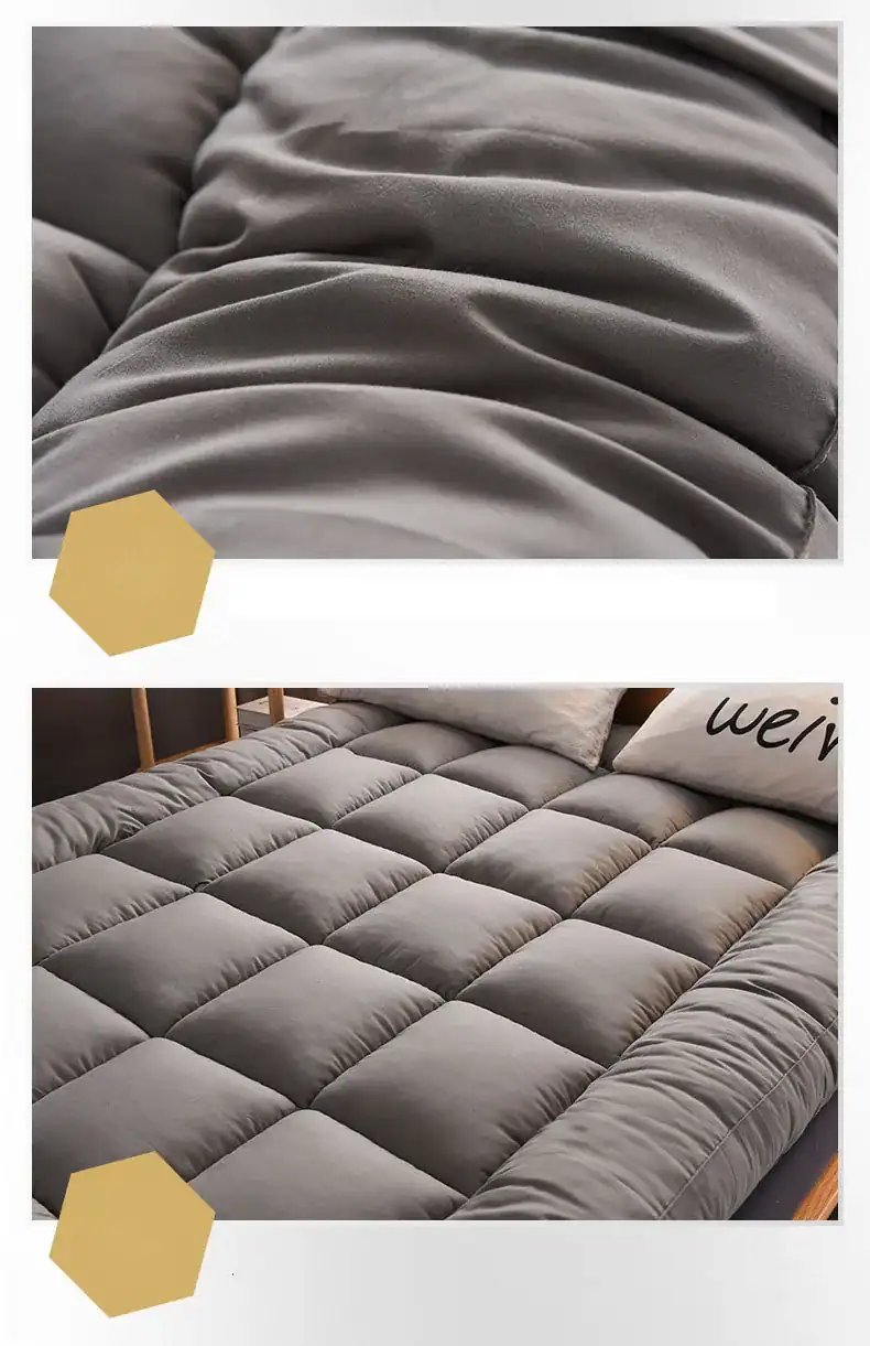 For a good night’s sleep, you need a good mattress. Introducing our Feather velvet mattress, which will help you fall into a magical sleep. The product is made of premium pp cotton fabric, it’s soft, comfortable, and breathable, safe for your skin. With the 3d quilting design, it can be folded back for easy carrying without worrying about deformation. This mattress has a beautiful appearance, thicken, four corners have straps for fixing, don’t worry about slipping. You can put the mattress topper on the bed, floor, or sofa and sleep on it. It’s suitable to take for travel or picnic, do the yoga or meditation. Order now!