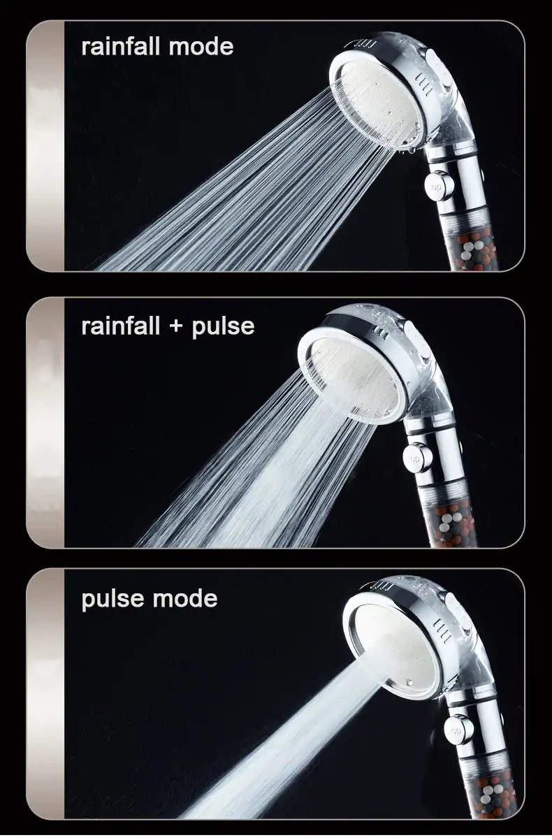 Preserve your beauty by having healthy, vibrant skin each time you shower with our filtration shower head. This universal bath shower head is made of high-grade ABS constructed, bright shine of chrome finish that works with any decorating style. No fade and no hazardous substance released during a long time use, eco-friendly and safe. It has three modes, each mode is made to enhance your shower experience, get you SPA shower experiences in your bathroom. The strong water mode brings a comfortable massage experience. The surfing mode has comprehensive water release, with a large amount of water, completely open the pores, release human body fatigue, relieve pressure, and so on. And the rain pattern, the water area is big, water current is exquisite, let you purify the exhaustion of a day, taking relaxed sleep. Buy now!