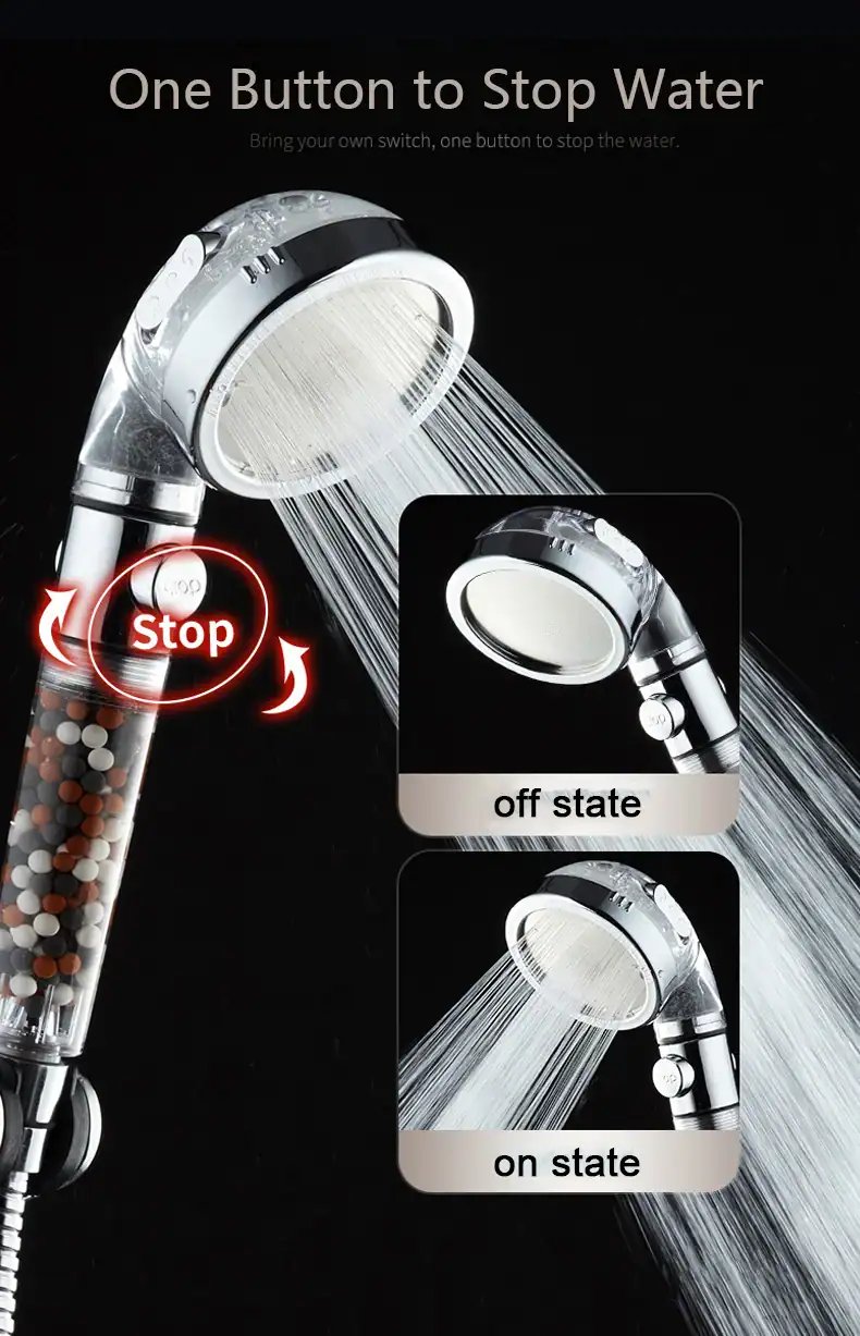 A super cool shower head! Arrived in a timely matter. Easy to install, works properly, the stop button will be very useful and it, plus it gives nice water adjustable pressure. Definitely recommended!