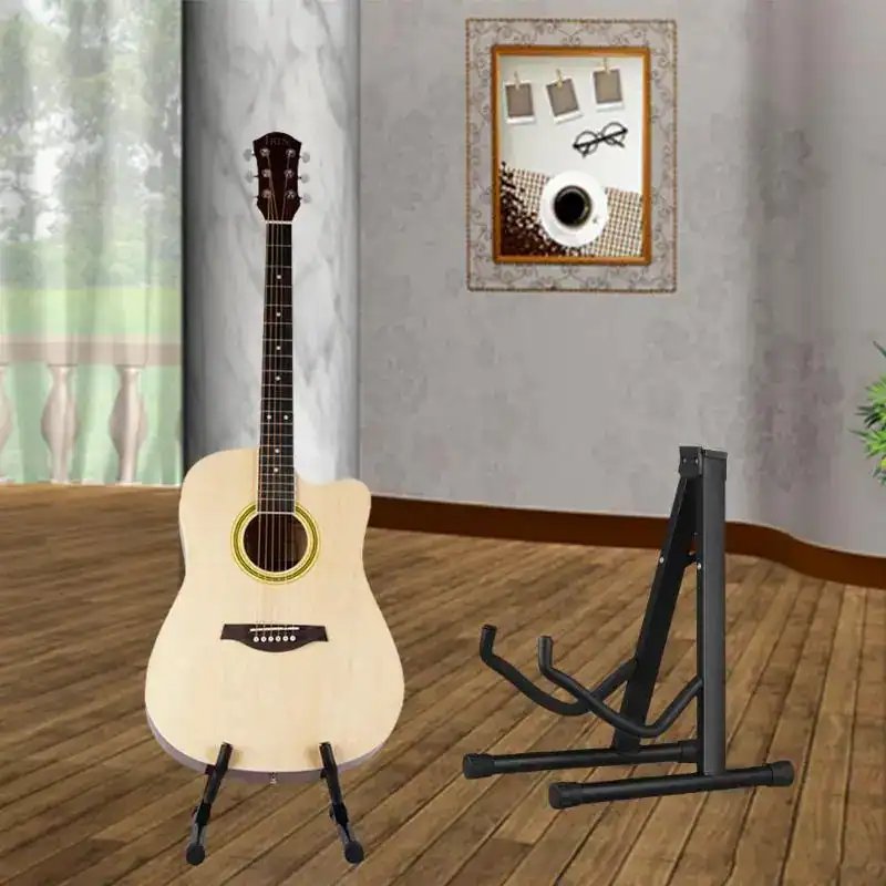 This modern designed A-frame, lightweight yet sturdy guitar stand makes your guitar or other similar musical instruments a beautiful presentation in your home or office. It folds in seconds for easy storage and transport. Padded soft yoke prevents your valuable instruments from minor scratching while the plastic end caps on the folding legs protect your floor and secures your instrument. The perfect addition to any guitarists musical equipment.