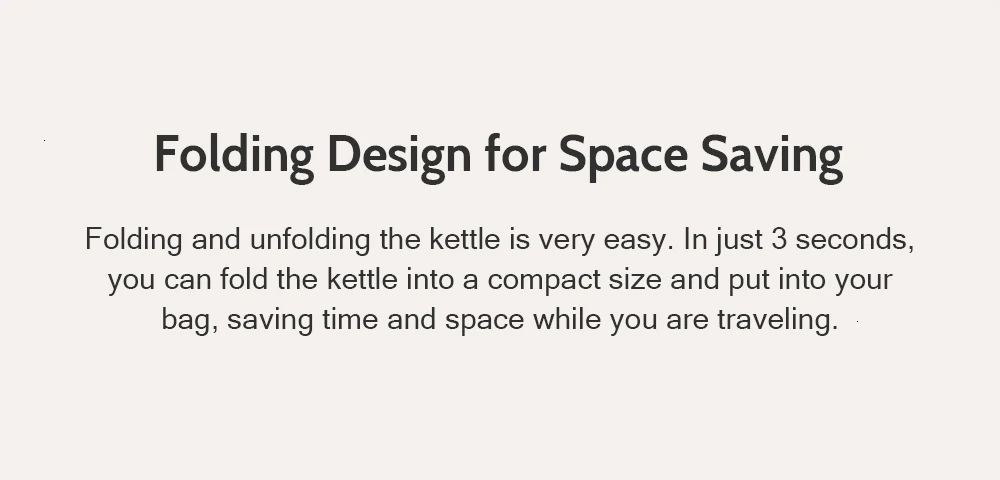 Do you miss morning tea when you travel? This is a foldable siloxane electric travel kettle. It has a simple control button and a high quality siloxane design to facilitate your folding. Stainless steel heating elements are heated rapidly at the end of the water. You can also enjoy the protection of dry boiling and low noise. In short, you can save time, energy and a lot of baggage space. Why not get one at home?