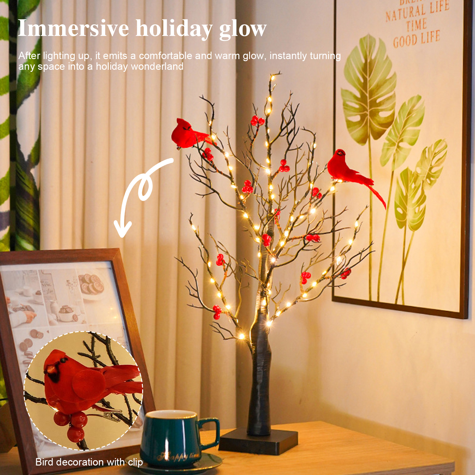 • Feature: Cardinals are attached with clips for customizable placement.