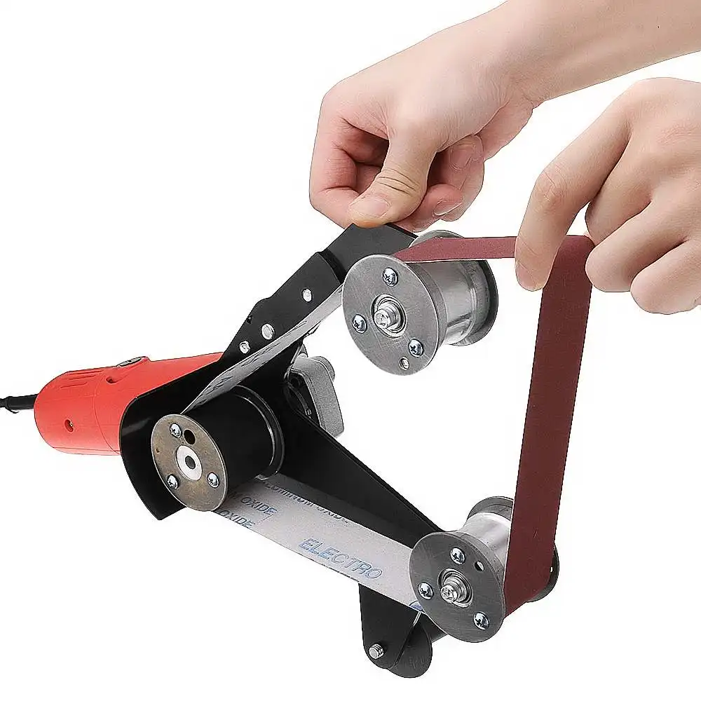 Are you looking for a multi-functional tool for polishing wood, metal, or stainless, etc? Introduce to you our Multi-functional hand flexible sander. It has the ability to change from an angle grinder to a belt sander in seconds. This tool is designed so that you can install the belt sander attachment onto a table, which provides a great stand. The perfect tool that can be used at home or for industry use! It is made from high-grade aluminum alloy, reduces noise, high stability. Perfect for burnishing, finishing, and reconditioning stainless steel, steel, non-ferrous metals, plastic, and wood! The sanding belt can be replaced by pushing the guide wheel, which is extremely convenient and fast. Buy now!