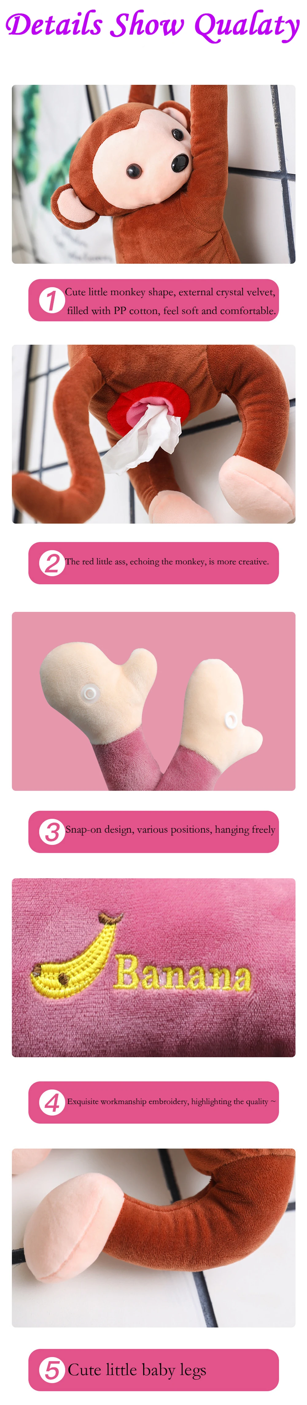 You can put the paper box in this monkey belly, and then get the tissue out at its butt… kids love it and find it hilarious!