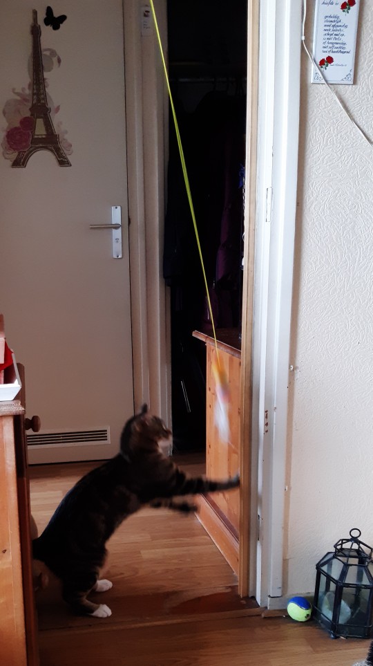 Great! The cat is fond of hanging apeelgoedje!!❤