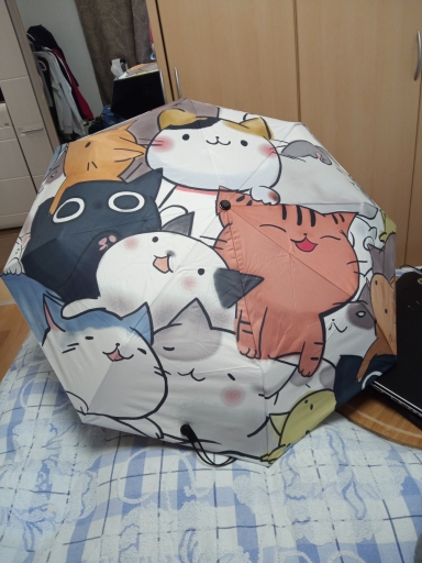 Happy cat family printed, the umbrella lights up the mood on dull rainy day, with a pinch of happiness; while being a UV umbrella, it enhances the happy mood during a sunny day too!