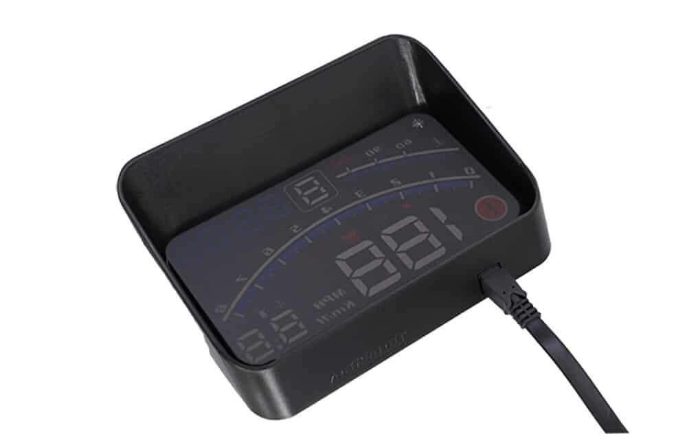 This is a classic OBDII heads up display car with a 5.5” large screen. Displays driving data on the front windshield, such as speed, RPM, water temperature, voltage, single mileage, etc. HUD avoids the danger of drivers looking down at the dashboard; it ensures the safety of drivers because they watch the data on the car’s front window glass and helps drivers to keep the best state on the way, keeping them in a safe driving mode. Besides, a variety of operating interfaces and colors can be switched freely. It will bring more fun to your car life.