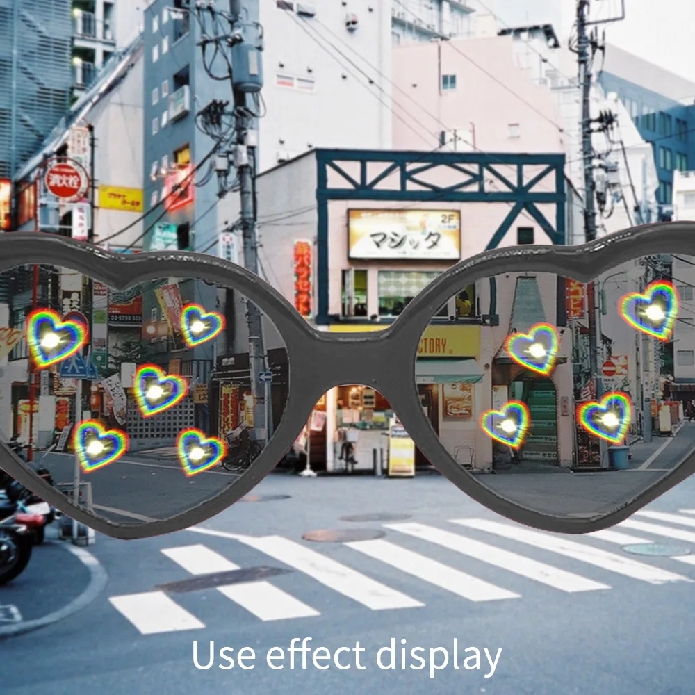Featuring our True Flex PVC Frame with Nearly Indestructible Lenses. The patented lens technology used in our glasses produces remarkable clarity and clear shapes. The unique 3D heart-shaped diffraction effect is only evident when you are looking head-on at a point of light.