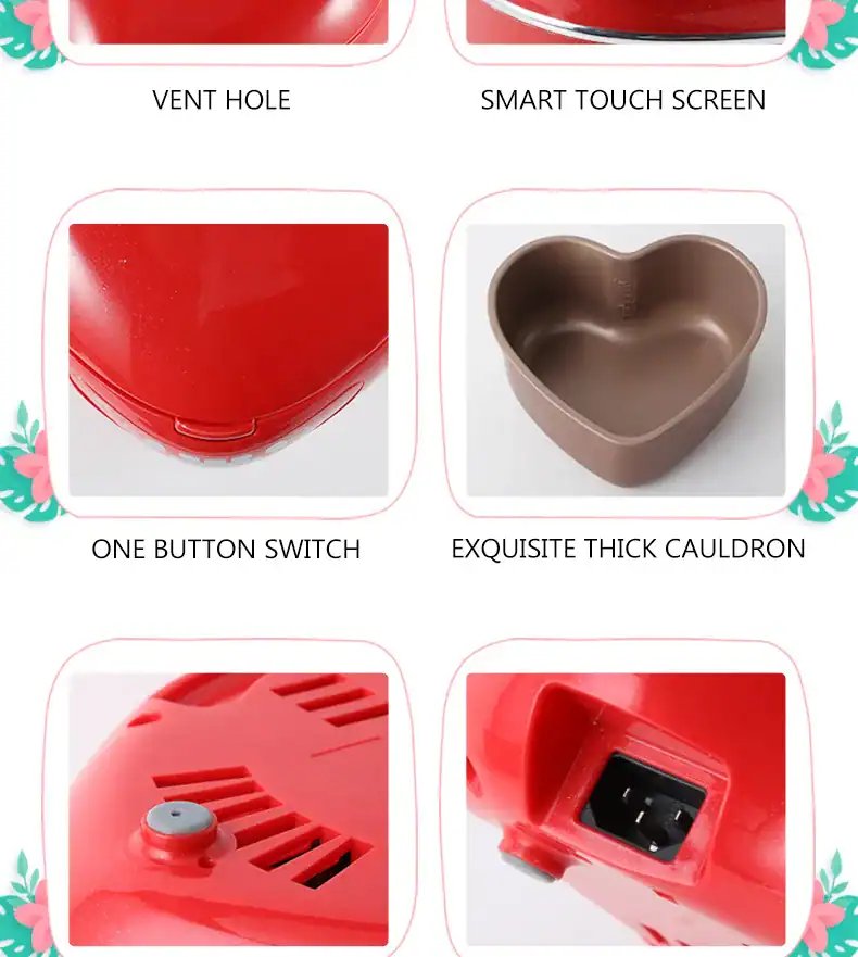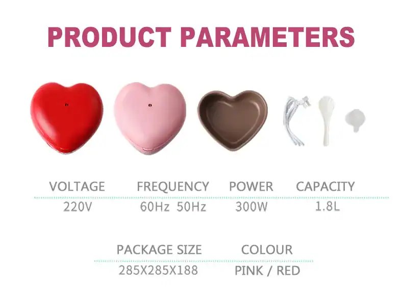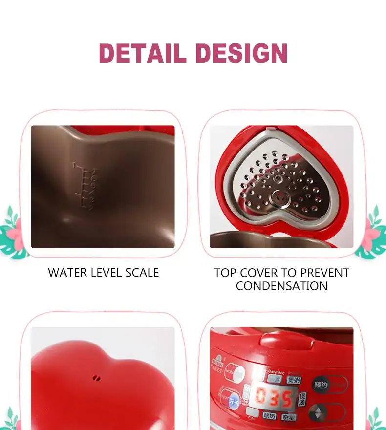 The Heart Shaped Rice Cooker is meticulously crafted to ensure both functionality and aesthetic appeal. It features a heart-shaped design with smooth curves and a vibrant color palette, making it a standout piece in any kitchen. The cooker is made from high-quality materials, ensuring durability and long-lasting performance. The non-stick inner pot and easy-to-use controls make cooking rice a breeze, while the heart shape adds a touch of fun and romance to your cooking experience.