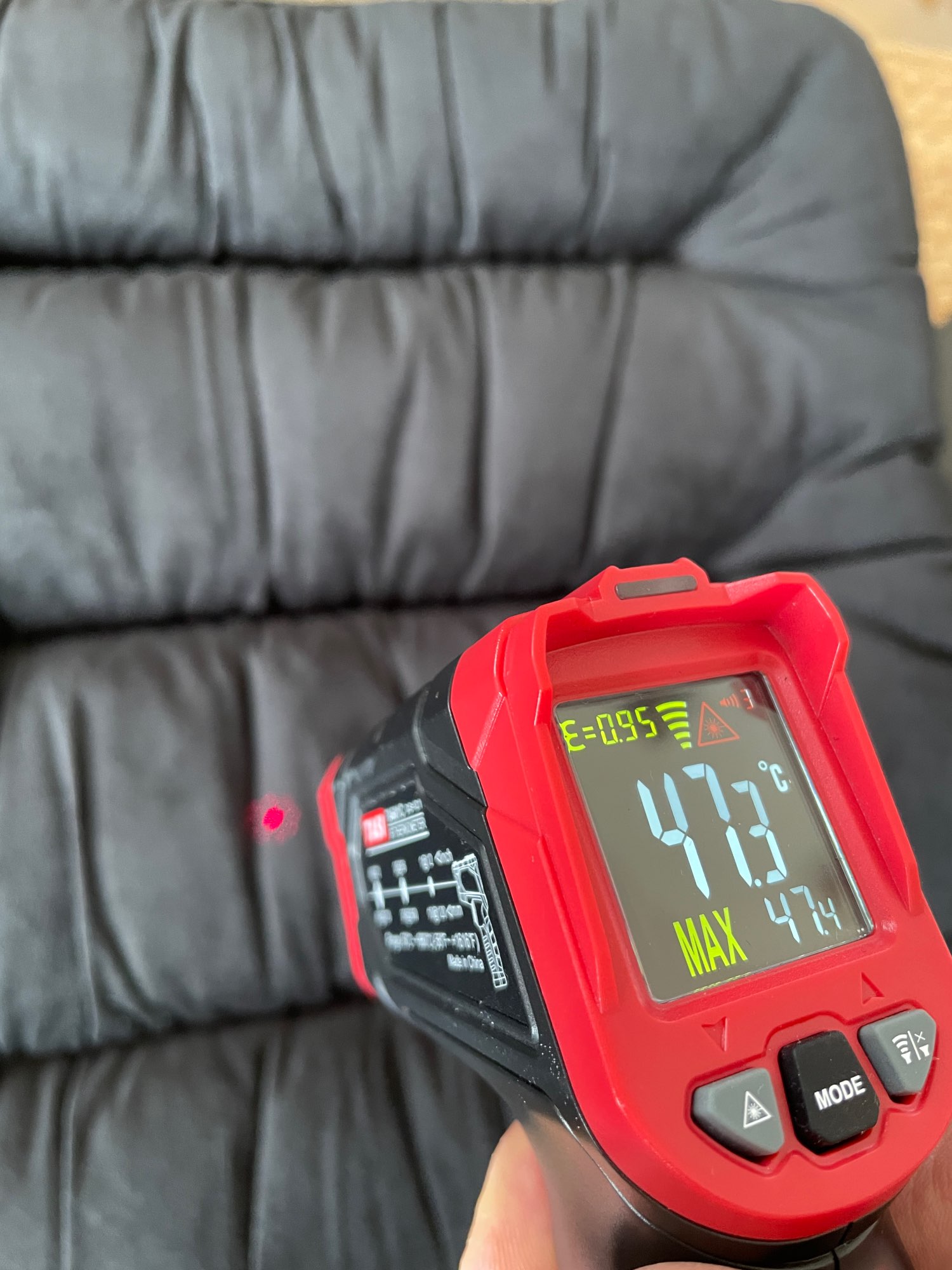 Excellent purchase; it's very cold in my office, and I was worried it might damage the chairs or something with the heat, but no, it's not dangerous and reaches a very good temperature. It has 3 temperatures that can be distinguished with the power button: low, medium, and high. All three are very pleasant, but the highest one is really very warm and saves me. It has to be connected all the time; in my case, since it's close to the desk with the cell phone cable, it's more than enough, but if you want it to stay on a chair or something like that, I think you would need a longer cable. Otherwise, it fulfills what it promises and exceeds my expectations. I've been using it for about a month, and everything is going well.