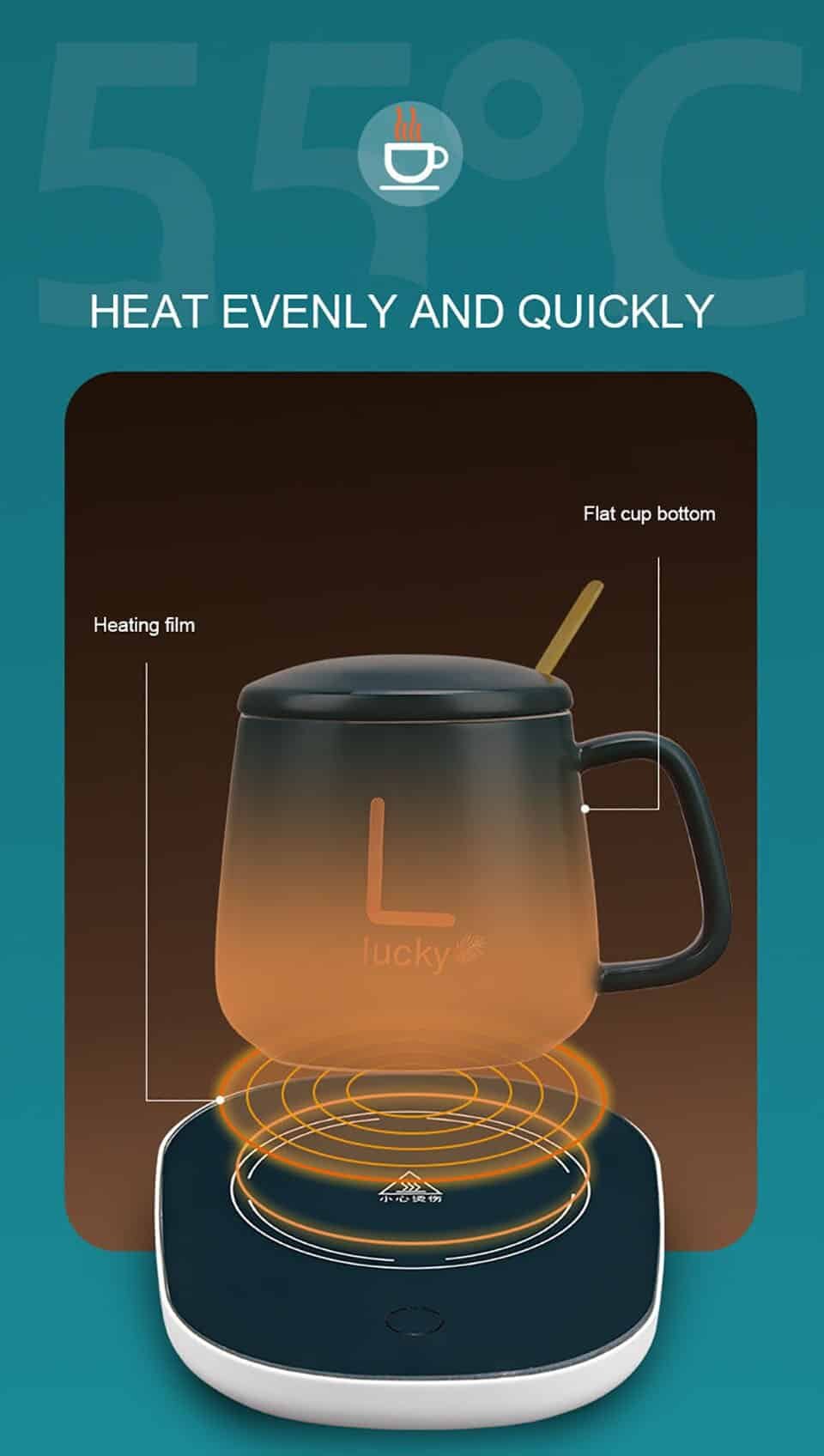 Maybe you should notice this thing, the good drink should be tasted slowly! Let’s keep your drink always warm and enjoy it with this heated travel mug. The mug can heat the drink in the cup via the wireless power supply, insulation guaranteed in the whole process, safe and reliable. Moreover, the inner cup is covered by multiple layers of lanolin glaze, which will not be sticky with tea residue or tainted by other odor, and become clean with one wash. The external cup is covered by black and white matte stone glaze, the corners are mellow and full. It’s simple to use, suitable for anybody, buy now!