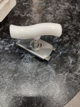 Helping Hand makes opening even the tightest jars effortless. The jar opener is adjustable to fit most jars. Simply insert it over the jar lid and twist the handle to open. It’s quick and easy!