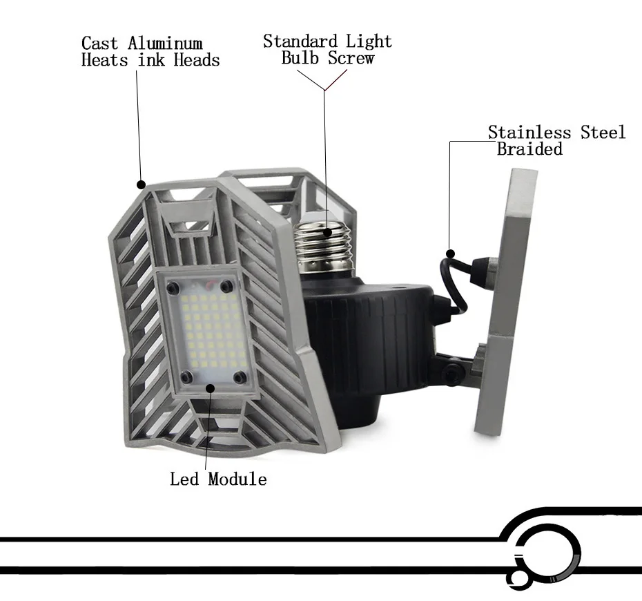 The three aluminium LED heads are adjustable. They are can be folded up to 90, this will make the light cover a wide area.