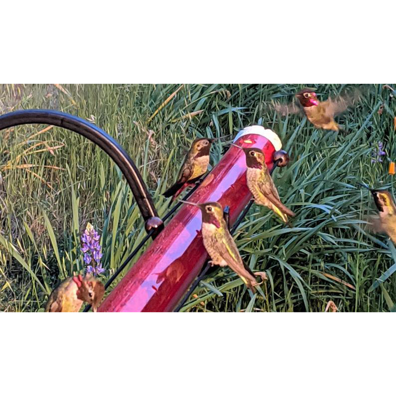 If your yard is fortunate enough to have an abundance of hummingbirds, then the Hummingbird feeder is the feeder for you! Unique horizontal design attracts more hummingbirds and no “filler jar” to block your view. Bright red transparent poly-carbonate tube avoids the need to add dye to the mixture. Also get visits from Hooded Orioles, Acorn Woodpeckers, and Yellow-rumped Warblers. It includes hanging loops, so just put it anywhere you want without drill or tie. The product is very easy to clean, just shoot a garden hose through it. The super-smooth and the slick interior have no crevices that can harbor mold. Don’t skip it, buy now!