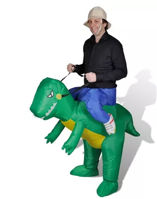 Looking for a costume that makes people do a double-take? Turn heads with the illusionary Inflatable Dinosaur Costume. This incredible costume creates the appearance of you riding on the back of a dinosaur with a matching camo hat.