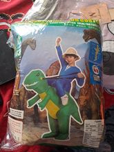 Looking for a costume that makes people do a double-take? Turn heads with the illusionary Inflatable Dinosaur Costume. This incredible costume creates the appearance of you riding on the back of a dinosaur with a matching camo hat.